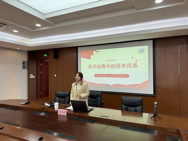 为深入学习贯彻习近平新时代中国特色社会主义思想和党的二十大,二十届二中、三中全会精神,加强党性教育,强化党员发展教育工作,全面提升青年学生的政治素养与思想水平。5月9日,3044am永利集团3044noc第十七期发展对象、第二十期入党积极分子培训班在临港校区学术楼303顺利开展《美术经典中的百年风华》专题党课。本次党课由学院本科生第五党支部书记曲家瑶主讲。