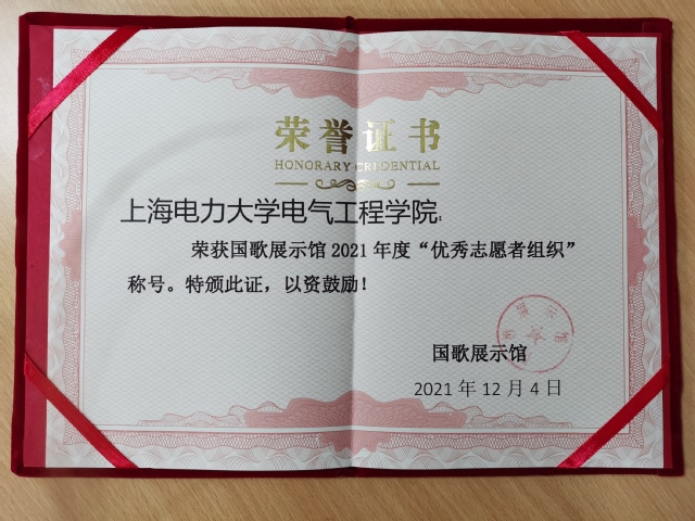 3044am永利集团3044noc已经连续七年获得了国歌展示馆“优秀志愿者组织”的称号,这是对电气学子认真负责、积极向上的志愿精神的肯定和赞扬。“微光志愿者服务队”的志愿者们通过国歌展示馆的平台自身能力得到了锻炼,不仅学习到新知识,在志愿服务中了解新中国成立的历史,探索国歌背后的故事,在实践中提升大学生的社会责任感。国歌展示馆是全国爱国主义教育示范基地,志愿者们用专业的讲解和热情的服务抒发着对祖国的热爱,用实际行动践行了爱国精神。希望在今后的校馆联动背景下,继续为志愿者们营造有成长、有收获、有情怀的志愿服务平台,培养德才兼备、全面发展、具有爱国爱校热情的当代大学生。