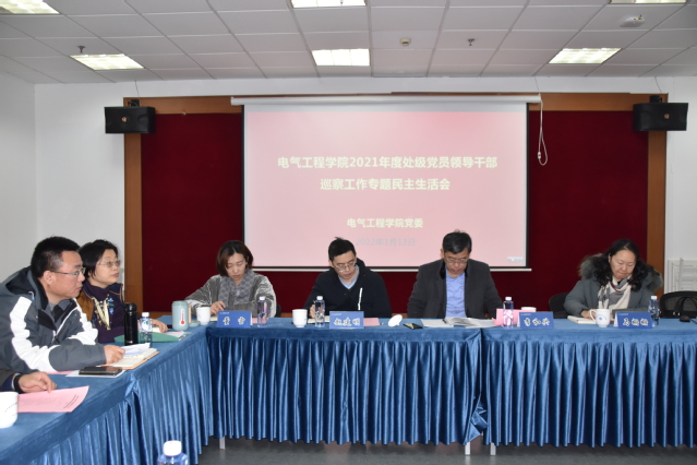 1月13日上午,电气工程学院2021年度处级党员领导干部党史学习教育专题民主生活会、巡察工作专题民主生活会在杨浦校区召开。校党委副书记、校长李和兴,校党委组织部部长赵建明,校党委组织部党委组织员马姗姗,校党委组织部副主任科员董雪出席并指导,学院党政班子成员、党委委员、组织员、党风廉政监督员等与会,会议由学院党委书记赵玲主持。