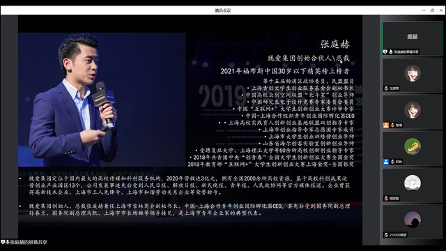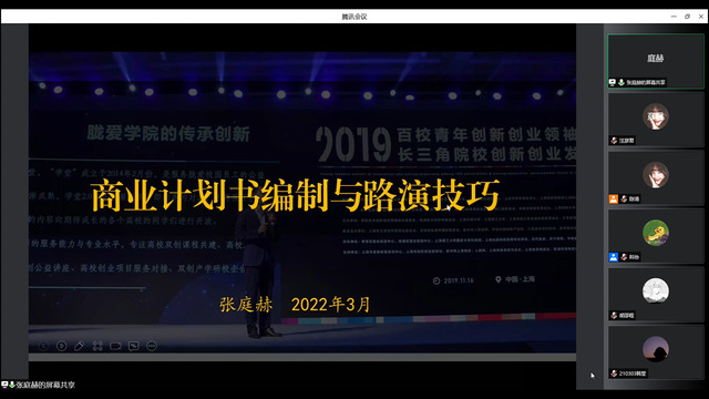 张庭赫老师是上海市青年企业家的典型代表,曾在“创青春”“互联网+”大赛中获得全国性奖项,也在多个创新创业大赛担任评审专家,经验丰富。会议上,张老师主要分享了融资演示PPT的结构,分别从“介绍”“业务”“未来”三个方面展开,以生动的例子启发同学,详细讲述了PPT的制作要点。对于同学们提出的问题,张老师也耐心解答。