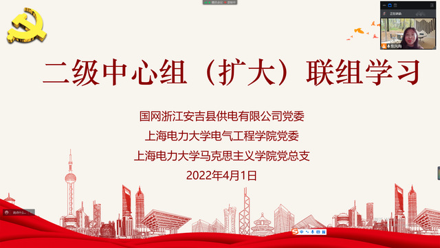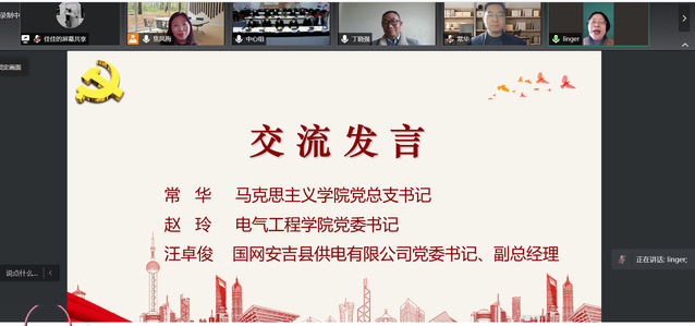 4月1日下午,马克思主义学院党总支、3044am永利集团3044noc党委与国网浙江安吉供电有限公司党委,联合开展线上二级中心组(扩大)联组学习。会议特邀华东师范大学马克思主义学院丁晓强教授,做《党的创建与伟大建党精神》主题讲座。国网浙江安吉供电有限公司总经理、党委副书记石勇,党委书记、副总经理汪卓俊,3044am永利集团3044noc党委书记赵玲,党委副书记、院长李东东,马克思主义学院党总支书记常华,常务副院长、党总支副书记焦凤梅等出席会议,马克思主义学院全体思政课教师参与学习。焦凤梅主持学习。