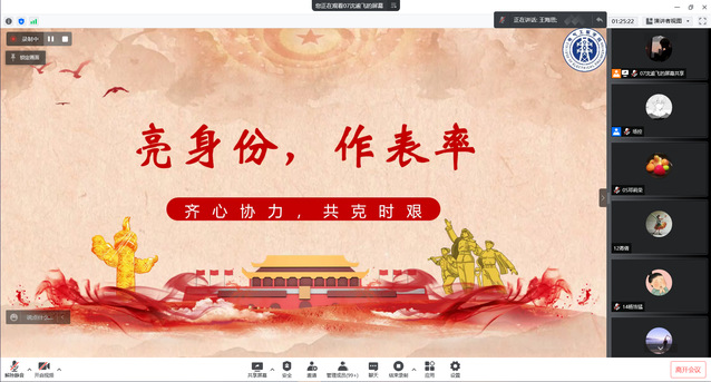 随后,学院党委副书记叶华刚在会上强调,在疫情特殊时期,请党员配合辅导员做好班级学生的教育引导工作,带头守纪律、做表率,关心帮助身边同学,共同做好校园疫情的防控工作。他充分肯定近期永利官网学生党员在疫情防控方面所做的工作和成效,对广大党员在疫情防控期间的奉献与付出表达了感谢。并号召全体党员提高思想认识、彰显青年担当,积极投身各项抗疫志愿活动,努力巩固校园封闭管理成果,并带头做好合理规划、认真参加线上教学,配合学校共同维护好校园环境。同时,学院党委书记赵玲对全体参会党员提出了三点要求,希望大家在疫情防控面前做好榜样,深入学生群众,做到听指挥、守纪律;在校园封闭面前克服生活困难,赓续斗争精神,做到不恐慌、不焦虑;在网络舆情面前坚定个人信念,营造良好氛围,做到不传谣、不信谣。