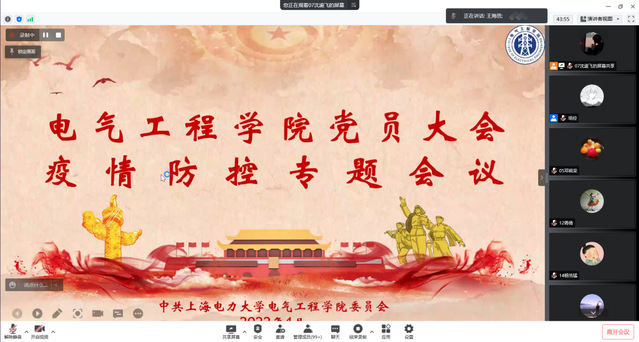 4月5日下午,为积极响应上海市教卫工作党委和校党委有关要求,3044am永利集团3044noc党委通过腾讯会议线上召开党员大会暨疫情防控专题会议。3044am永利集团3044noc党委书记赵玲、党委副书记叶华刚、学生支部书记和全体学生党员参加会议。会议由学院专职组织员王海思主持。