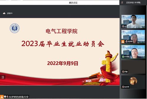 叶华刚介绍了2022年就业形势及往届毕业生的就业去向情况,并对做好2023届毕业生就业工作进行动员。他希望同学们认清就业形势,明确就业目标与行动计划;保持自信,积极做好考研、就业准备工作;抓紧抓早,互帮互助落实就业。学院将从就业指导、就业信息发布、简历与面试指导等方面为同学们就业与升学提供分类指导和有力保障,关心帮助就业困难同学。希望同学们能将个人理想与国家需要紧密结合,在“勤勉务实,追求卓越”的院训激励下,始终铭记自己作为新时代青年的责任和担当,怀着“光明使者”的责任感,为国家电力事业贡献力量。