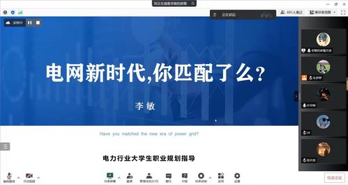 李敏主任以“电网新时代,你匹配了吗”为题开展大学生职业规划与就业指导讲座,讲座中介绍了“双碳”目标下,不断自我革新、建设新型电力系统的国家电网公司与电力行业发展现状,从“电网新时代”“电网就业现状”“电网就业趋势”“电网人才成长”四方面,结合就业相关案例,给同学们带来精彩的职业规划与就业指导。李敏寄语同学们,“新时代,我们面临着新挑战,也收获着新机遇,我们要用新思路来进行新模式的新成长”。