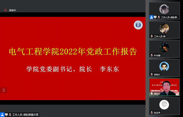 学院党委副书记、院长李东东作《3044am永利集团3044noc2022年党政工作报告》,从“以重点工作带动学院发展”“抓好基础工作,保障学院运行”“创新工作机制,实现特色发展”“存在的困难和主要问题”“2023年工作展望”等五个方面对学院2022年开展的工作进行全面总结。报告指出,2023年是全面贯彻落实党的二十大精神的开局之年,谋划好2023年乃至更长一段时期的工作目标,意义重大而深远。全院上下将以习近平新时代中国特色社会主义思想为指导,深入学习贯彻党的二十大精神,准确理解和对标学校党委提出的“六个新”发展理念,始终秉持电气人“勤勉务实追求卓越”的院训精神,踔厉奋发,勇毅前行,用创新意识、实干精神和优异成绩续写学院发展新华章!