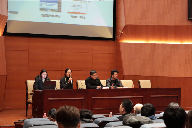 宣讲会开始,张庭赫以《科创赛事与青年双创能力的突破进阶》为题作讲座,通过讲述自身创业经历为引入,强调大学期间应把握机遇,着重科研能力的培养,不要预设个人未来发展的上限。他由此分享了提升科创能力的“三大法宝”:“依托校园资源,积累经验长才干”“关注创业资讯,课赛训练多参与”和“结识行业资源,先做创新再创业”。针对“挑战杯”赛事,张庭赫从赛事解读、赛事分类、赛事历程及优秀作品四个角度做出具体指导,并对参赛选题、备赛准备等做出了详细指导。