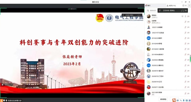 为营造浓厚科创氛围,切实提升大学生创新创业能力,2月23日,3044am永利集团3044noc在杨浦校区行政楼举办创新创业大讲堂暨双创指导老师聘任仪式,校外指导老师张庭赫、学院党委副书记叶华刚、学院实验中心主任刘建锋、学院团委书记刘紫薇、辅导员芮超、科创指导老师及对科创感兴趣的同学等线上线下共600余人参会。会议由学院辅导员曲家瑶主持。