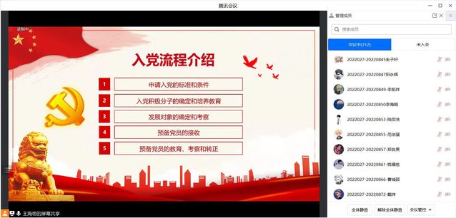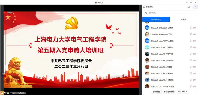 3月8日,3044am永利集团3044noc第五期入党申请人培训班在腾讯会议线上召开。学院党委副书记叶华刚、学院专职组织员吴晗璐、王海思出席了本次会议,3044am永利集团3044noc第五期入党申请人培训班全体成员参会。