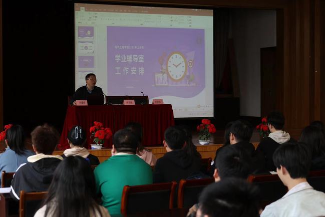 孙攀峰对新学期学风工作进行工作布置,就学风建设工作、学期学习活动、学业帮扶工作、班级学风工作、诚信教育活动、考风巡查工作等作出安排。