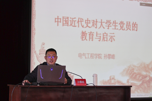 孙攀峰作题为《中国近代史对大学生党员的教育与启示》的主题党课。讲座伊始,孙攀峰首先为学员们详细讲解了欧洲资本主义的发展历史,将鸦片战争前后中国与欧洲的发展作对比,深入分析了近代以来中华民族倍受屈辱的原因,告诫学员们要牢记“落后就要挨打”的道理。并结合近代以来中国社会发展的主要矛盾与社会现状具体阐述了不同社会阶级对救亡图存道路的探索历程,强调只有中国共产党能代表中国最广大人民群众的根本利益,只有中国共产党才能带领全国人民实现民族的解放与自由。最后,孙攀峰号召各位学员要坚定文化自信与制度自信,要坚定自己的理想信念,学习百年党史,做马克思主义的忠诚拥护者、共产主义的忠实践行者和中国特色社会主义道路的坚定推动者,为实现中华民族伟大复兴贡献自己的力量!