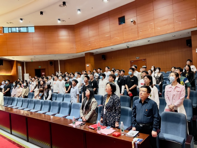 大会上还组织了党员重温入党誓词环节。研究生党员杨云轶领誓,全体党员同志紧握右拳,在现场进行了庄严宣誓。学生党员代表冯艺萱向大家宣读学院廉洁承诺书,各位毕业生党员庄重签名,许下承诺。活动在全体师生嘹亮的歌声《国际歌》中圆满结束。