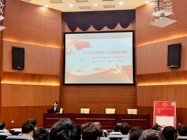 学生党员代表杨云轶分享了《不忘初心共筑梦,牢记使命勇向前》的主题党课,通过分享背离党性的案例和《觉醒年代》的精彩片段,激励新时代的青年们要把个人的理想追求融入党和国家事业之中,为党、为祖国、为人民多作贡献,争做新时代的奋斗者。最后他讲到作为新时代青年党员要心怀共产党人的初心,为实现中华民族的伟大复兴奋勇前进!