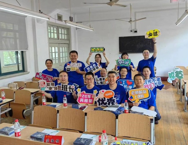 当年班主任淡淑恒教授与校友们团聚在教室,拉家常、谈往事、话发展,为校友毕业后在各自工作岗位上取得的成绩感到骄傲,祝福校友们在今后的人生道路上幸福美满。