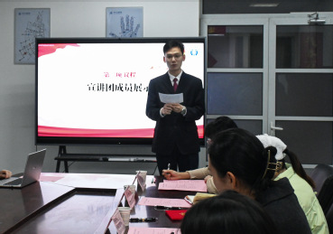 刘紫薇首先介绍了宣讲团成立背景、人员构成及宣讲安排,激励宣讲团成员用“青年青语”,阐释“党言党语”。挖掘身边小事作为切入点,创新形式,推动理论学习入脑入心入行动。