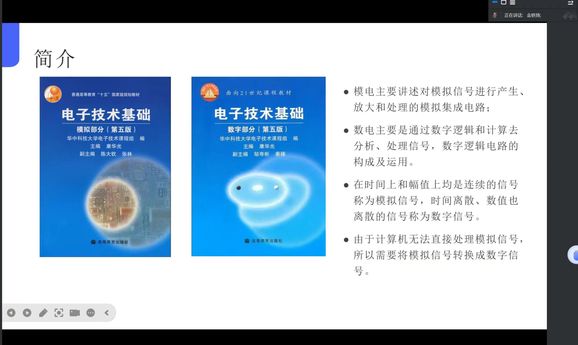金轶扬同学为大家分享了她的模电课程学习经验。她首先详细介绍了《电子技术基础》模拟部分教材的核心内容,讲解了如何在时间和幅度上深入理解模拟信号的特点,并结合实际实验中的体会,分享了高效的学习策略。她的分享内容详实,与会同学表示受益匪浅。