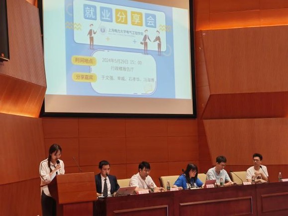 在就业经验分享环节,于文强、单威、石孝华、冯海博四位已经签约国家电网、南方电网毕业生代表详细介绍了各省份电网公司的招聘情况,分享了他们的招聘经历和求职心得。