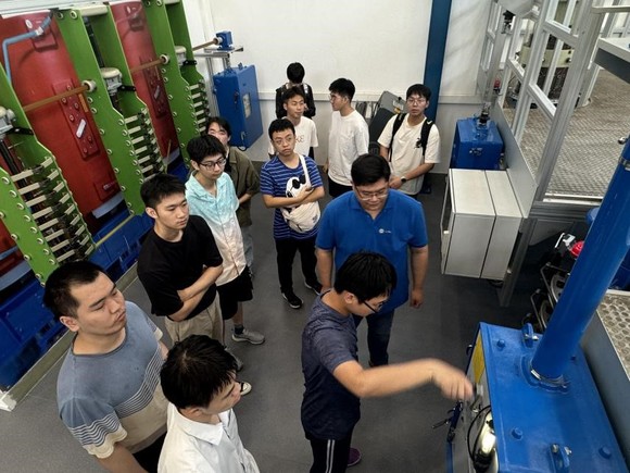 上午,专业讲解员带领大家深入了解了有载分接开关,详细介绍了这一设备的基本概念、功能及其在电力系统中的重要作用,并进行现场演示,让同学们更直观地理解了调压过程及其原理。