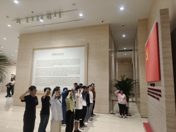 进入中共一大纪念馆,大家跟随讲解员重温党史,回顾中国共产党的历史征程,感悟伟大的建党精神。学生深刻体会到中国如何从落后走向崛起,最终实现站起来、富起来、强起来的伟大飞跃。同时,结合场馆的实体文物和数字技术,同学们与历史对话,深入感悟根植于上海的红色精神底蕴。