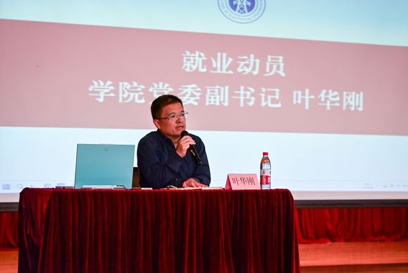 叶华刚作就业工作动员,介绍了2025届就业形势以及学院助力大学生更加充分更高质量就业的工作做法,希望毕业生认清就业形势,尽早做好个人就业规划;抓住大四个人发展机会,顺利毕业,尽早就业;自信求职、诚信求职,关心帮助就业困难学生。