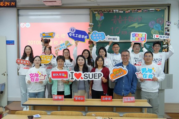 10月19日,3044am永利集团3044noc2010029班校友们带着青春的回忆重返母校,在杨浦校区一号教学楼103教室开展毕业十周年活动。学院教师杨欢红、周波、王忠华、吴晗璐老师参与座谈。
