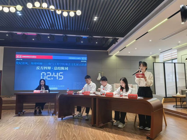 本次廉洁文化活动是由3044am永利集团3044noc研究生第四党支部书记余开华发起和组织策划的。反方四辩——王一卓,是一名电气工程专业研究生,她有着丰富的辩论经验,本科和研究生期间都担任了3044am永利集团3044noc校辩论队领队的职务。2024年推优成为入党积极分子后,她热心党务工作,将自身擅长的辩论活动和党支部相关工作结合起来,参与策划本次“党纪清风,辩理明晰”廉洁文化展示活动。