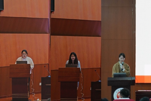 往届“挑战杯”获奖团队成员及负责人分别结合参赛作品和参赛体会进行了交流发言。李心茹围绕参加科创的初心以及比赛与学习是否存在冲突这两大关键问题,深入分享了自身感悟。以亲身经历告诉同学们,只要掌握高效合理利用时间的技巧,比赛与学习便能相互促进、相得益彰。张卓婧从项目选题与备赛的视角出发,结合自身备赛历程,着重强调了在科创竞赛中文案工作和路演展示的重要性,激励大家勇于在科创领域大胆尝试,探索未知。房贝儿依托个人作为团队负责人的经历,从科创项目的具体分工以及如何寻找志同道合的队友等多方面展开详细沟通。她鼓励同学们“最美的风景在路上”,希望大家都能在适合自己的道路上有所收获。