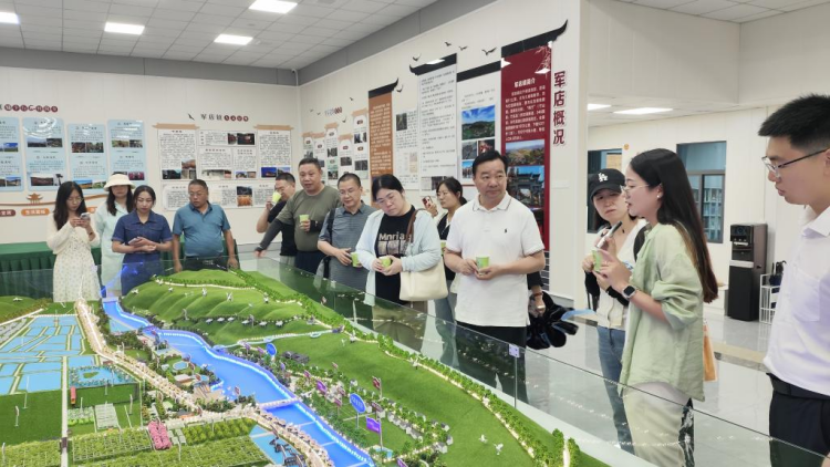 在军店镇中村村,教师们走进田园驿站学习了该村“五心家园”建设经验做法、参观了水产养殖基地,身临其境感受乡村振兴的时代风貌,围绕党建引领产业发展、党员帮扶群众、能人带动市场、逢六议事模式等工作进行了深入交流。