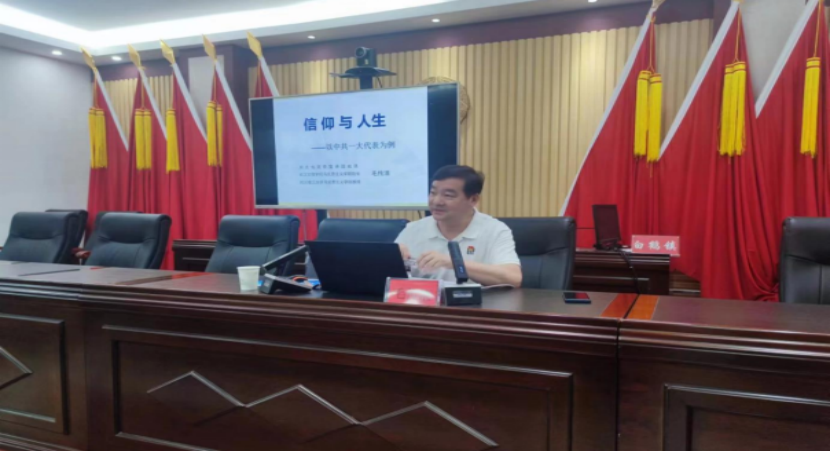 为庆祝中国共产党成立102周年,激励全镇党员干部弘扬伟大的建党精神,激发奋进动力,6月29日,省党史宣讲团成员、我校mile米乐集团官网院长毛传清教授受白鹤镇党委邀请,赴该镇给党员干部上了一堂“信仰与人生”专题党课。学校党委书记杨知勤、组织部副部长肖玉、驻村工作队,白鹤镇党委书记蔡建宇、党委副书记、镇长唐盛波、党员代表参加了本次讲座。