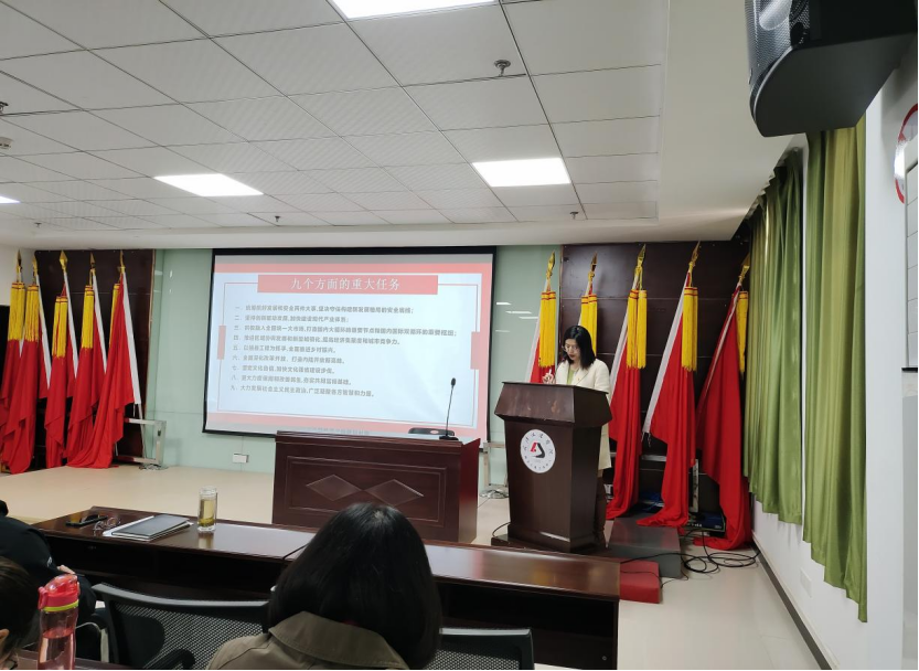 本次党课活动曹卓主要以习近平总书记考察湖北发表的重要讲话为主,从坚持以人民为中心、统筹发展与安全、科技自立自强、实施人才强国战略、党建引领基层治理五个方面来讲述本次的党课。
