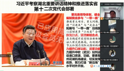 为进一步深刻认识习近平总书记考察湖北的重大意义。坚决把总书记的殷殷嘱托转化为做好湖北工作的实际行动,立足新发展阶段,完整、准确、全面贯彻新发展理念,推进落实省第十二次党代会部署,努力建设全国构建新发展格局先行区,教育引导师生创造新时代更加辉煌的业绩。根据省委宣传部,省教工委的指示,mile米乐集团官网发扬思政政治理论课主阵地作用,把习近平总书记考察湖北重要讲话精神及省第十二次党代会部署融入课堂,纳入新学期“开学第一课。